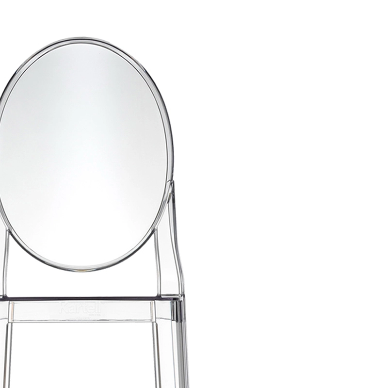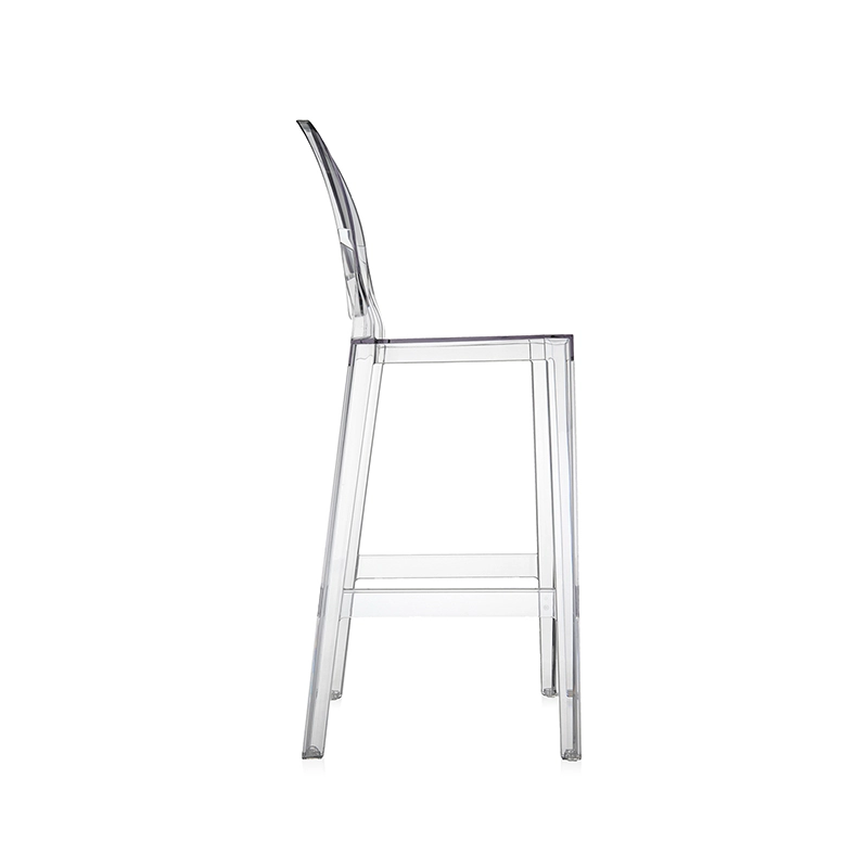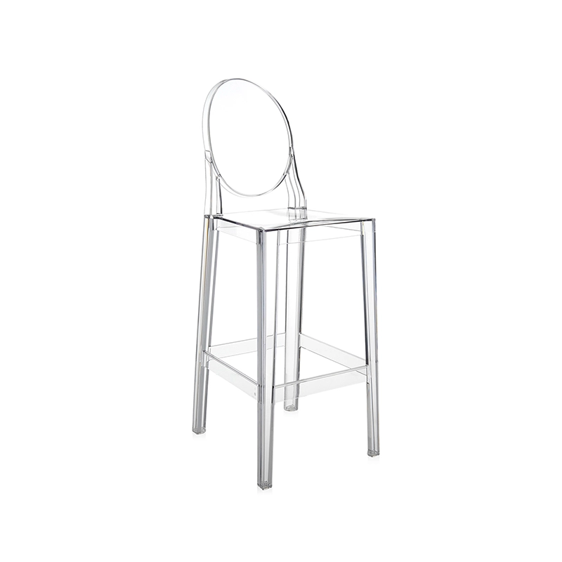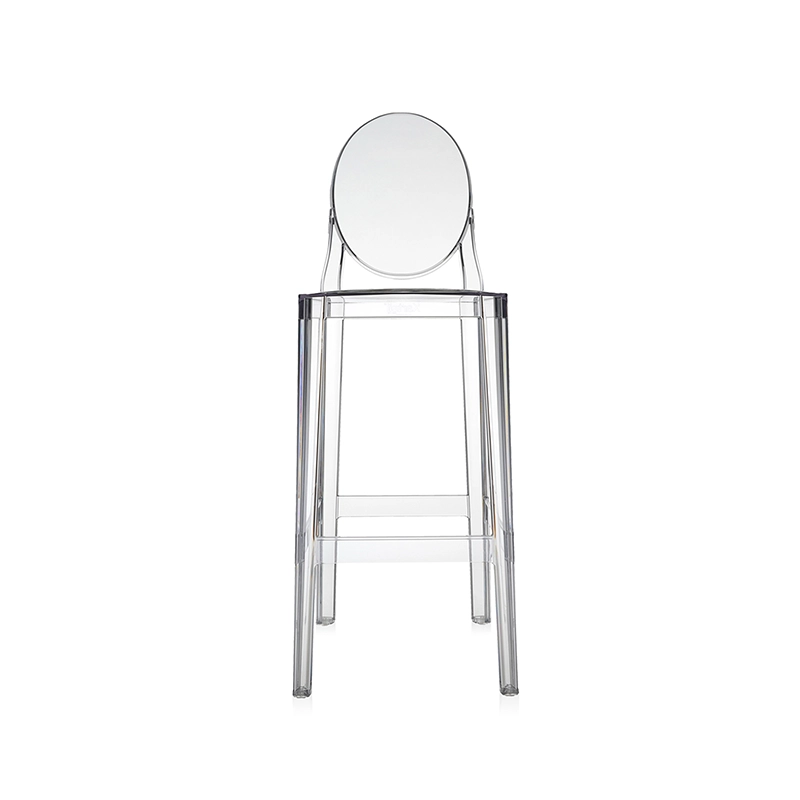 One More Stool is designed by Philippe Starck for Kartell. Its classic lines with medallion back in polycarbonate cast in a single piece make it unbreakable and durable for both high and low temperatures. Can be used indoors and outdoors.Available in crystal transparent colour.